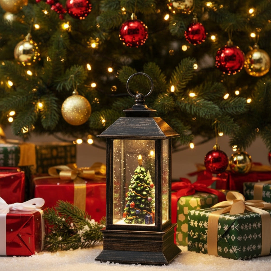 - 1 x Vintage-style LED Lantern with enchanting snow globe scene inside.